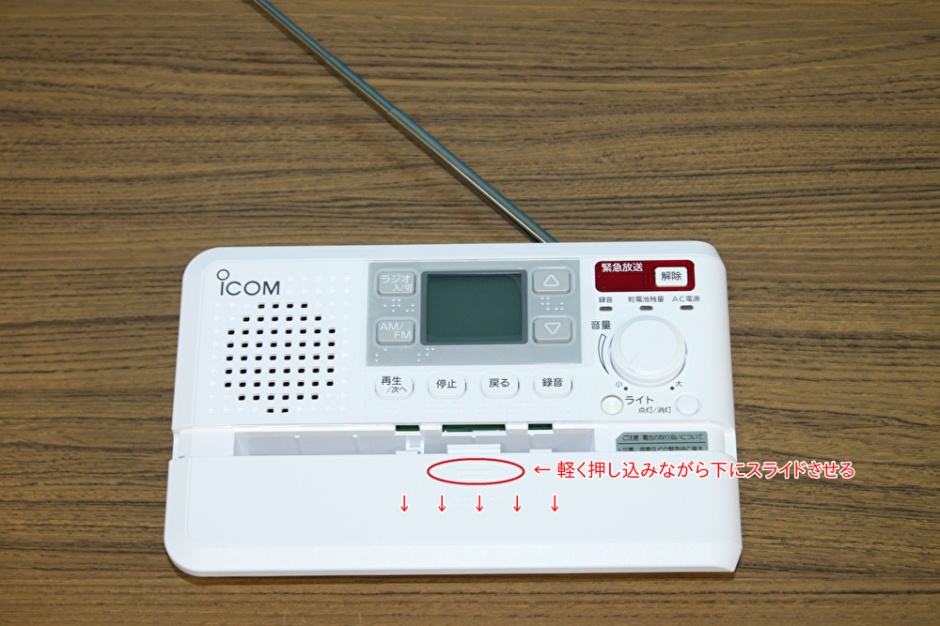- 落下しても乾電池が外れないように設計されているため、水平に入れてから強く押し込む必要があります